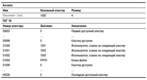 Таблица 12. Записи файлов в файловой системе FAT 16