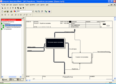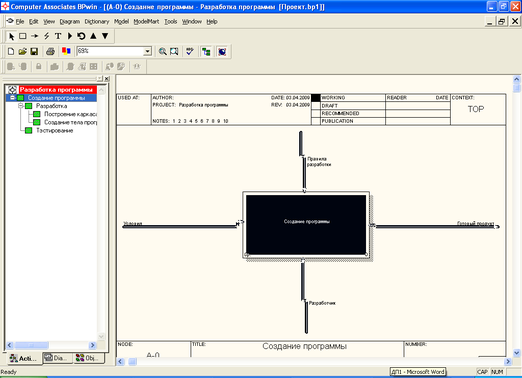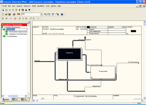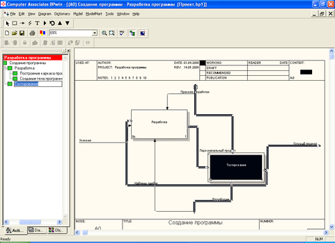 Процесс разработки АИС можно отобразить в виде диаграмм в программе BPwin. На рисунке 4 отображены этапы разработки АИС. Диаграммы верхнего уровня – Создание программы (рис. 4) состоит из двух диаграмм второго уровня Разработка и Тестирование (рис. 5 и рис. 6).