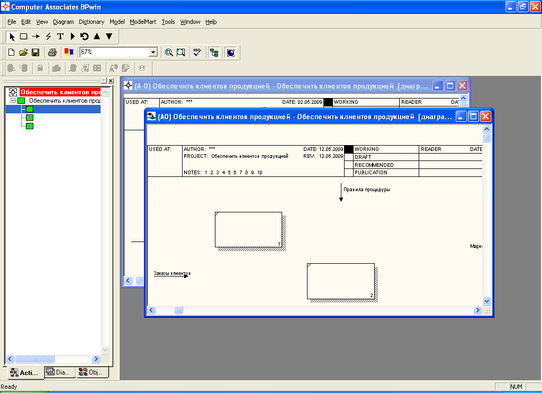 Процесс создания модели работ является итерационным, следовательно, работы могут менять свое расположение в дереве узлов многократно, чтобы не запутаться и проверить способ декомпозиции, следует после каждого изменения создавать диаграмму дерева узлов. Впрочем, BPwin имеет мощный инструмент навигации по модели – Model Explorer, который позволяет представить иерархию работ и диаграмм в удобном и компактном виде, однако этот инструмент не является составляющей стандарта IDEF0.