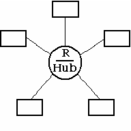 Когда используется топология звезда, то каждый компьютер (и т.п.) подключен отдельным проводом к отдельному порту устройства, называемого концентратором или повторителем (репитер), или хабом (Hub).