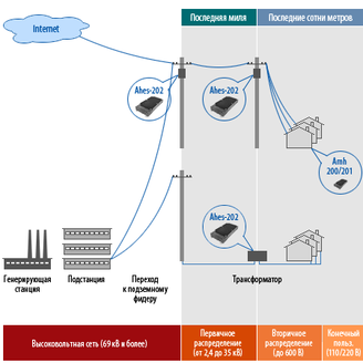 Для сбора и передачи данных по линиям электропередач 0, 4-110кВ предлагается оборудование узкополосного доступа – модемы, емкостное и индуктивное устройства присоединения к кабельным линиям и ЛЭП. Оборудование разработано специально для решения задач контроля и управления в области энергетики и построения систем, таких как АСКУЭ и АСУТП, передачи голоса и других данных.