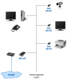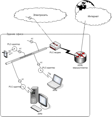 Рис. 1.6. Вариант исполнения PLC-сети внутри здания: организация сегмента PLC-сети