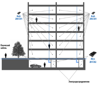 Рис. 1.7. Вариант исполнения PLC-сети внутри здания: много сегментная PLC-сеть