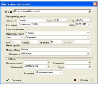 2.2) При переходе на вкладку доверенные лица семьи. Открывается форма содержащая общею информацию о людях которые могут встретить дежурный экипаж и быть понятыми при описи украденного имущества.