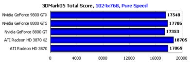 В общем зачёте новинка показала даже несколько меньший результат, нежели Nvidia GeForce 8800 GTS 512MB, что, вероятнее всего, обусловлено иной версией официальных драйверов. Впрочем, 3DMark05 уже давно не является адекватным мерилом производительности современных графических карт с унифицированной архитектурой и поддержкой продвинутых вычислительных возможностей.
