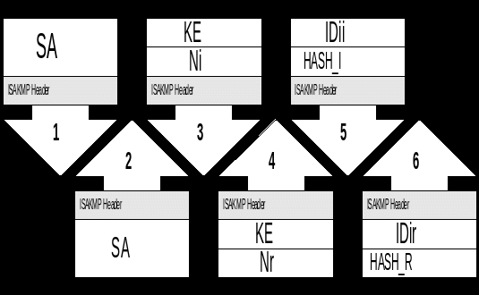 Все пакеты, которыми обмениваются партнеры в процессе установления соединения, начинаются с ISAKMP заголовка. Он содержит некоторую идентифицирующую информацию (Initiator Cookie, Responder Cookie и Message ID), тип обмена, флаги, номер версии и длину всего пакета.