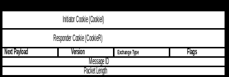 Следующим полем идет Next Payload, которое показывает тип компонента (payload) следующего за заголовком. Version показывает версию используемого протокола. Exchange type говорит о режиме, при котором используется данный пакет (Main Mode, Aggressive Mode, Quick Mode и т.п.). Флаги содержат информацию о состоянии пакета, например, зашифрован он или нет. Еще одним идентификатором пакета является Message ID. Последние 4 байта содержат длину всего пакета, включая сам заголовок.