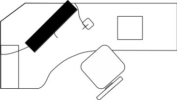 Для работы с литературой, например, методического пособия, требуется дополнительное пространство на рабочем столе. Его можно освободить, убрав со стола системный блок в стол и применив специальную конструкцию стола, показанную на рисунке 7. Стул должен быть вращающимся для удобства маневрирования, а также с регулировкой по высоте, чтобы обеспечить оптимальные условия при работе с клавиатурой и монитором.