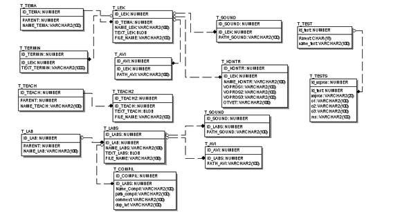 Таблица “T_TEMA” является главной для таблиц “T_LEK”, “T_TERMIN”, “T_KONTR”, “T_SOUND”, “T_AVI”.