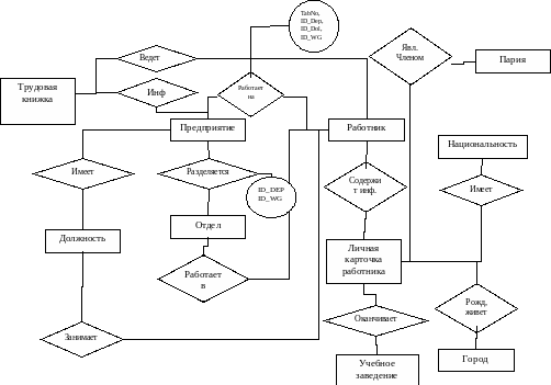 В соответствие с полученным набором отношений, спроектируем структуру таблиц базы данных. Структуры таблиц с указанием наименований, типов, размеров полей и указанием ключей приведены в таблицах 2.1-2.11