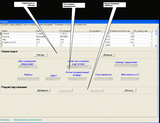 | Этап формирования списков машин и водителей | регистрация новых машин; удаление информации о списанных машинах; изменение статуса машин и водителей; |