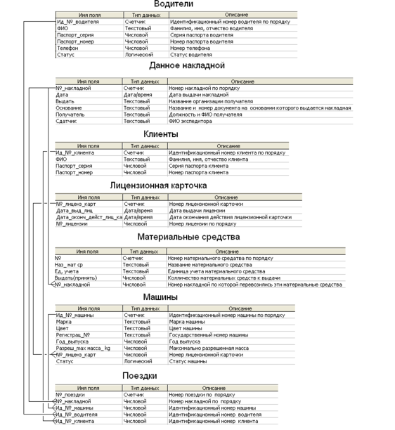 На этапе анализа необходимо подробное исследование как будущих функциональных возможностей разрабатываемой системы, так и информации, необходимой для их выполнения. Поэтому особое внимание было уделено как полноте информации, так и поиску противоречивой, дублирующей или неиспользуемой информации. После проведения нормализации таблица «Поездки», была разделена на следующие таблицы: