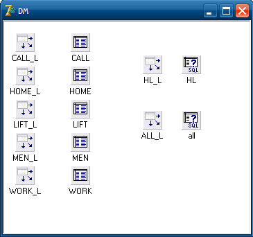 Для реализации SQL запросов, которые используются приложением , в модуль данных были добавлены еще несколько компонентов TQuery и DataSource.