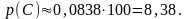 Этому значению в таблице соответствует величина, равная 0,0838. Считая по формуле (3.2), получаем