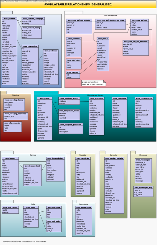 Так как сайт написан при помощи системы управления содержимым Joomla, база данных которой представлена в виде MySQL, база данных сайта будет поддерживать ту же структуру (Рисунок 1), внося в неё свои изменения.