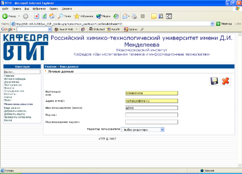При открытии страницы «Форум» пользователь попадает в форум кафедры.