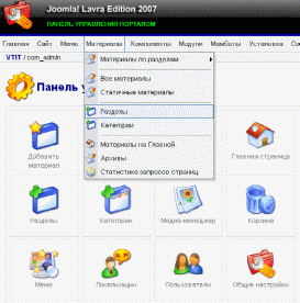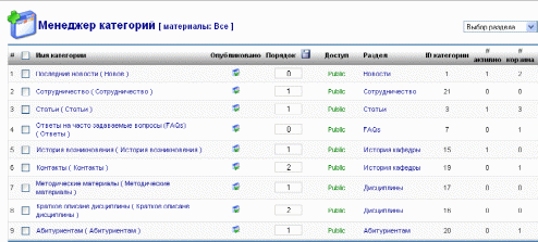 Рисунок 10 - Доступ на страницу "Управление разделами" (Section Manager), или далее на страницу "Управление категориями" (Category Manager)