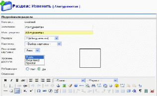 Помощь – открыть в новом окне страницу описания по данному окну (редактирование "Раздела"). Нажмите кнопку "Помощь".