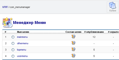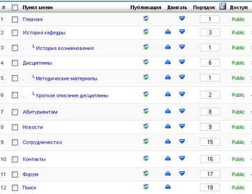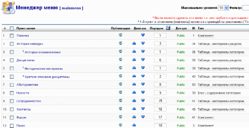 Рисунок 17 - Страница "Управление меню [mainmenu]"