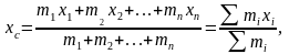Прибавляя к системе четвертую, пятую и т. д. точки, получим, что координаты центра масс системы n материальных точек: