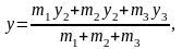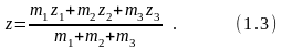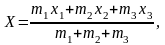 Легко получить координаты центра масс трех материальных точек, подобно тому как это сделано выше для двух точек: