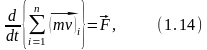 Продифференцируем равенство (1.18) по времени и сравним с выражением (1.14). В равенстве (1.18) после дифференцирования справа, а в равенстве (1.14) слева стоит одна и та же величина – производная от вектора полного количества движения тел системы. Следовательно,