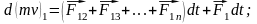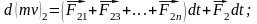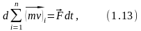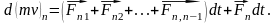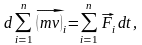 Сложив левые и правые части уравнений, мы получим: слева – полный вектор изменения количества движения системы; справа – импульс результирующей внешних сил:
