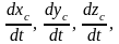представляющих собой слагающие скорости движения центра масс системы по осям координат, а справа – компоненты вектора полного количества движения тел системы: