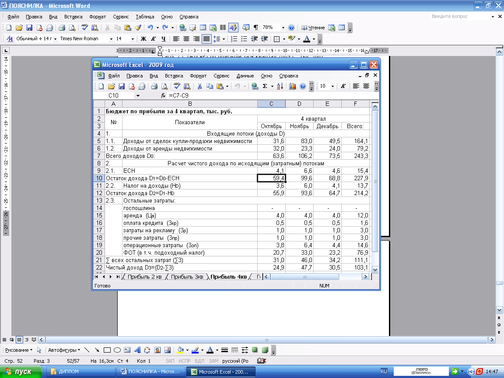 Табл. 22. Бюджет по прибыли за 4 квартал 2009 г., тыс. руб.