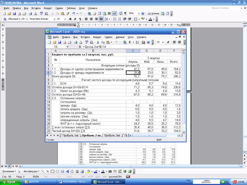 Табл. 20. Бюджет по прибыли за 2 квартал 2009 г., тыс. руб.