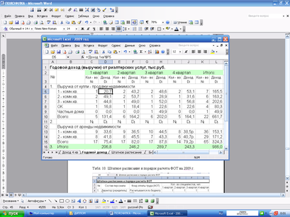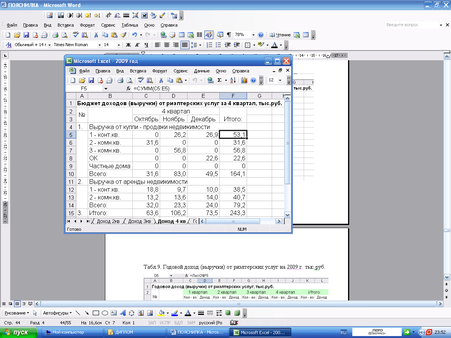 Табл. 6. Годовой доход (выручки) от риэлтерских услуг на 2009 г. тыс.руб.
