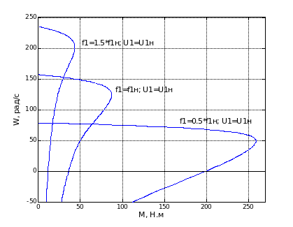 Рисунок 2.9 - Механические характеристики при пропорциональном изменении частоты и напряжения