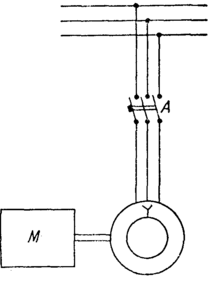 В настоящее время в связи со значительным ростом мощностей энергетических систем пуск в ход короткозамкнутых асинхронных двигателей в преобладающем большинстве случаев осуществляется очень простым способом (рисунок 2.6), а именно непосредственным включением в сеть.