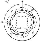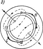 Рисунок 2.10 - Изменение числа пар полюсов асинхронного двигателя переключением цепей обмотки статора: а - при большем числе полюсов; б - при числе полюсов в 2 раза меньшем