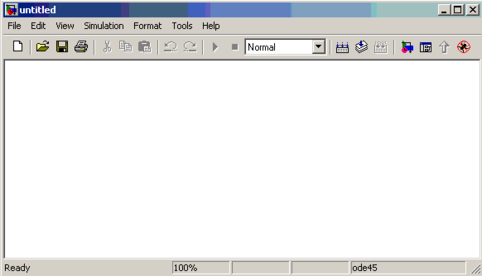 Сборка модели осуществляется в рабочем поле специального окна (рисунок 4.2). Это окно имеет строку меню, панель инструментов и рабочее поле. Меню File (Файл) содержит команды, предназначенные для работы с МDL - файлами; меню Edit (Правка) - команды редактирования блок-схемы; меню View (Вид) команды изменения внешнего вида окна; меню Simulation (Моделирование) - команды управления процессом моделирования; меню Format (Формат) - команды редактирования формата (то есть команды, позволяющие изменить внешний вид отдельных блоков и блок-схемы в целом). Меню Tools (Инструменты) включает некоторые дополнительные сервисные средства, предназначенные для работы с S-моделью.