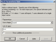 Рисунок 4.8 - Блок Sum: а) внешний вид, б) окно параметров