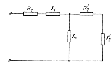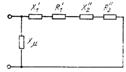 По известным паспортным данным АД и параметрам Г-образной схемы замещения рассчитываются параметры Т-образной схемы замещения в режиме короткого замыкания (рисунок 4.4) и коэффициенты системы уравнений (4.2) и параметры блоков модели АД.