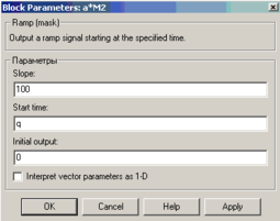 Блок α•М2 (рисунок 4.13) является задатчиком нагрузки и устанавливает на валу линейно изменяющийся во времени момент нагрузки.