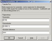 (рисунок 4.9) реализует звено введённой в него передаточной функции. Аналогичный в схеме блок:
