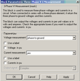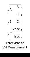 Трёхфазный измеритель напряжения и тока Three-Phase V-I Measurement (рисунок 5.3) измеряет трёх фазное мгновенное напряжение и ток, потребляемые нагрузкой от источника.