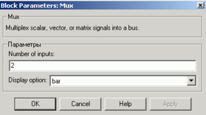 Шинный формирователь Mux (рисунок 4.16) выполняет объединение входных величин в единый выходной вектор (шину), что очень удобно, так как схема получается мене загромождённой.