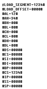 LOAD_SEGMENT = 0100 LOAD_OFFSET = 0000 CS = ES = SS = DS = 0100 IP = 0000 Если LOAD_SEGMENT и LOAD_OFFSET не определены, то используются значения CS и IP, и наоборот.