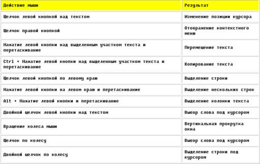 Использование мыши Редактор поддерживает следующие действия мыши: