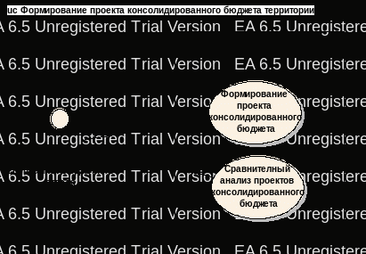 В процессе выполнения прецедента «Формирование проекта консолидированного бюджета» пользователь регистрирует в системе новый проект консолидированного бюджета, указывая при этом наименовании территории и год на который составляется проект бюджета, а также проекты бюджетов, которые участвуют в формировании консолидированного бюджета.