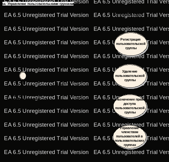 В процессе выполнения прецедента «Регистрация пользовательской группы» администратор регистрирует в системе новую пользовательскую группу. Пользовательские группы служат для облегчения процесса администрирования системы.