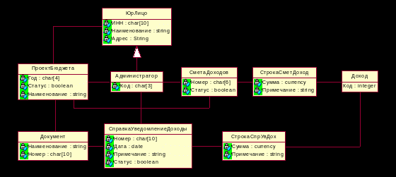 На рисунке 2.4 представлена часть концептуальной модели, которая отображает объекты, участвующие в процессе составления смет доходов администраторов бюджетных средств и доходной части проекта бюджета.
