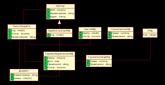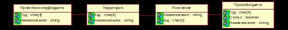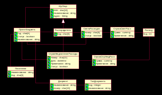 На рисунке 2.7 представлена часть концептуальной модели, которая отображает объекты, участвующие в процессе составления консолидированного проекта бюджета территории.