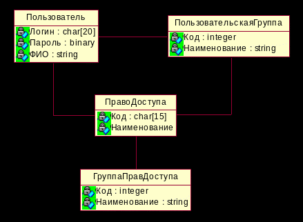Рисунок 2.8 – Объекты, участвующие в процессе управления пользователями системы и их правами доступа