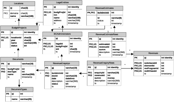 На основе модели состояния системы разработана концептуальная модель данных проектируемой системы, включающая описание классов и их атрибутов. В дипломе представлены концептуальные модели бюджетной классификации доходов и расходов, источников финансирования дефицита, доходов администраторов бюджетных средств и доходной части проекта бюджета, смет расходов распорядителей бюджетных средств и расходной части проекта бюджета, смет источников финансирования дефицита бюджета, консолидированного проекта бюджета территории.