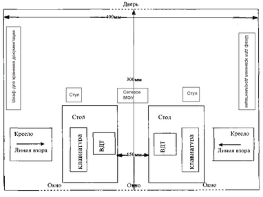 расстояние между рабочими столами с видеомониторами – 1,5 м;